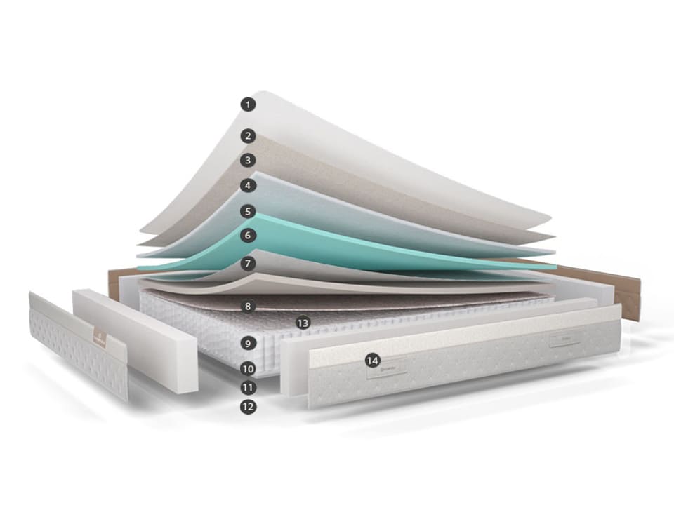 Solei incorpora el sistema Multisac® System, poniendo a disposición de tu descanso un total de 500 muelles ensacados individuales, que aporta un plus de confort y transpirabilidad, ofreciéndote la máxima independencia de movimiento, adaptándose a la perfección al cuerpo de cada durmiente para que podáis moveros todo lo que queráis durante la noche.