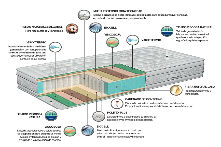 Bandas laterales de Biocell soja. Proporciona firmeza y estabilidad en los laterales del colchón.