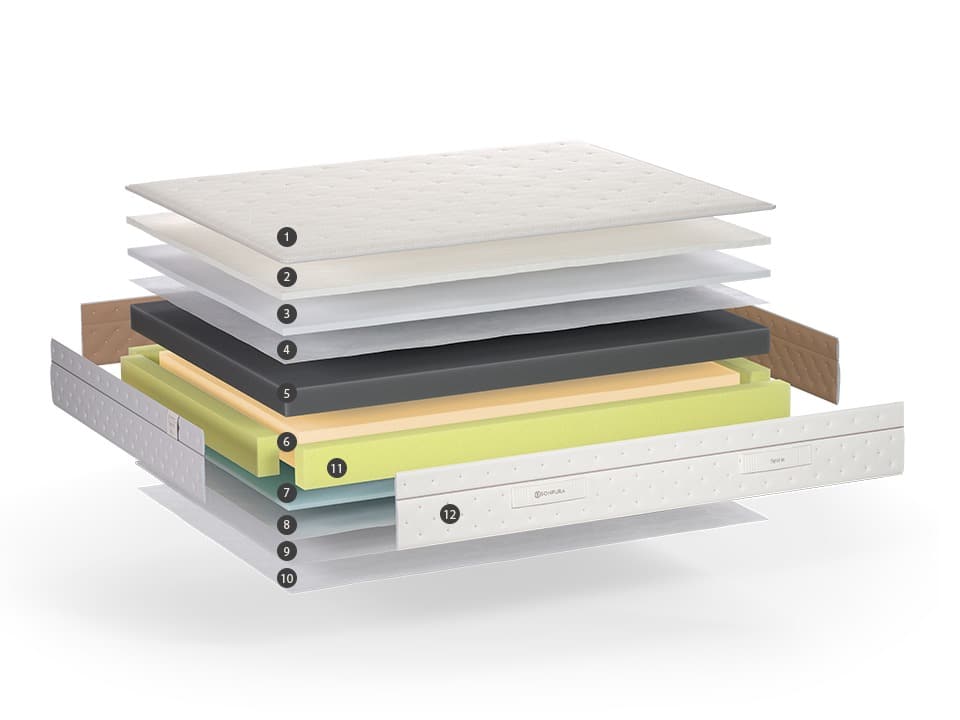 Marco de alta densidad que recubre el núcleo del colchón. Su estructura alarga la vida del colchón y garantiza una mayor estabilidad, resistencia e indeformabilidad.